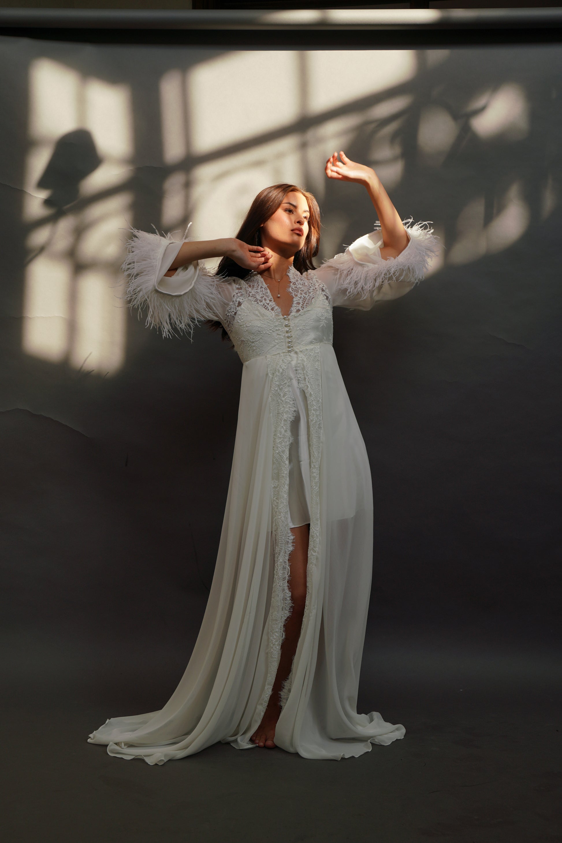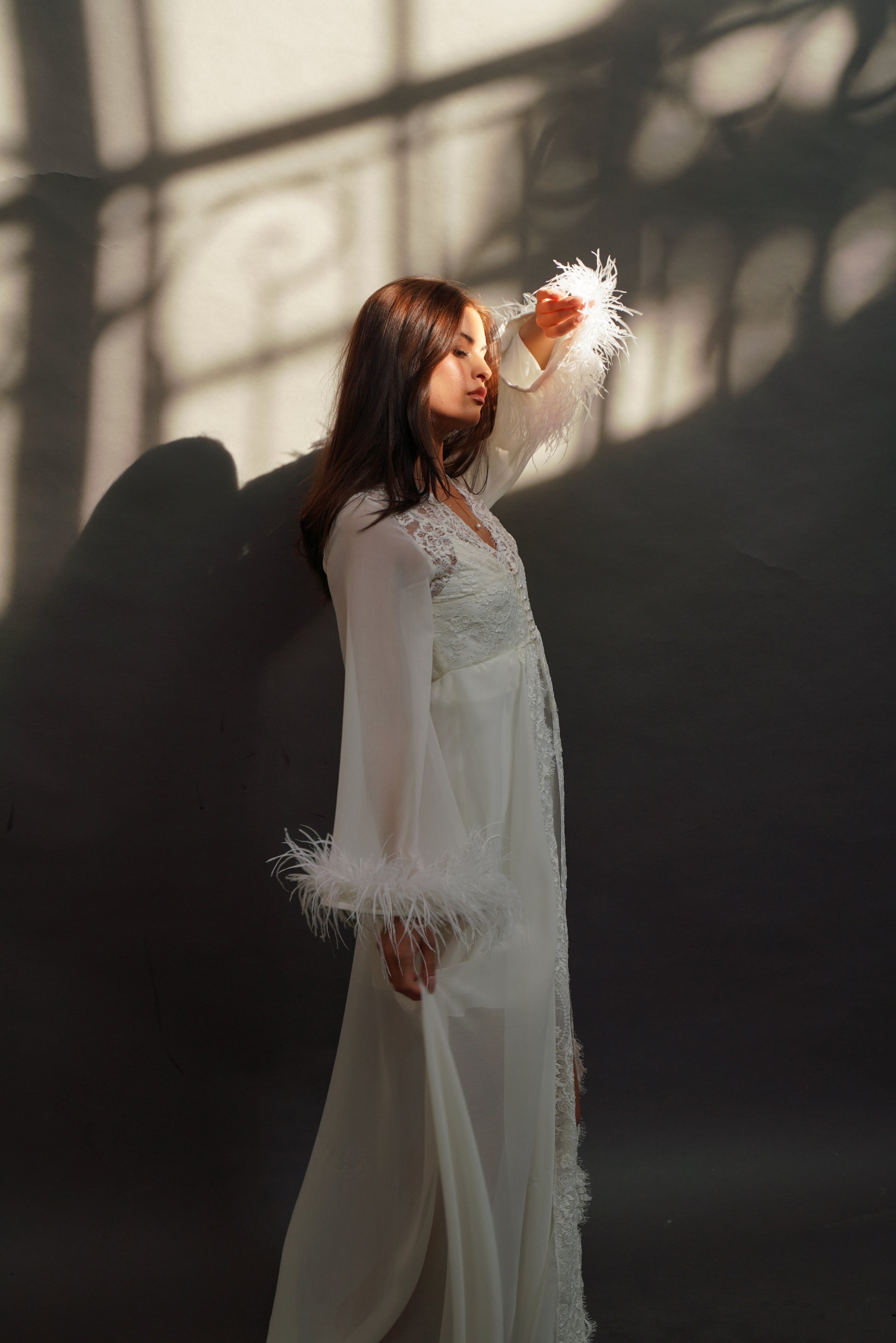 long sleeves with faux feather trims